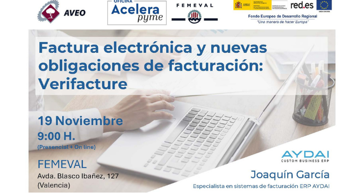 AVEO y la Oficina Acelera Pyme de FEMEVAL, organizan una jornada informativa sobre VERI*FACTU, el nuevo sistema de facturación electrónica y sus implicaciones directas en la gestión de las empresas de nuestro sector, en la Comunitat Valenciana.